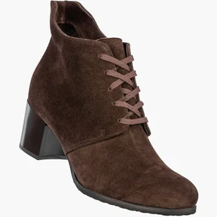 naturalna skóra zamszowa o eleganckiej fakturze Kolor: klasyczny, ciemnobrązowy odcień Wnętrze: miękkie ocieplenie zapewniające ciepło w chłodne dni Zapięcie: praktyczny zamek błyskawiczny ułatwiający zakładanie Sznurowanie: pozwala na idealne dopasowanie butów do stopy Obcas: