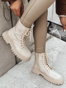 Botki damskie TENTIS Sznurowane botki z imitacji skóry to idealna propozycja, dzięki której dopełnisz jesienno-zimowe stylizacje. Umiejscowione zostały na gr...