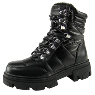 Płeć: Damskie, Kolor: Czarny, Wysokość: Wysokie, Materiał: Ortalion, Rodzaj zapięcia: Sznurowadła, Dodatkowe informacje: Sztywny zapiętek, Stan: Nowy