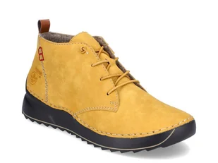Botki damskie RIEKER® w kolorze żółtym wykonane ze skóry nubukowej. Wnętrze ocieplane wełną. Wkładka wykonana z filcu. Specjalna wkładka Rieker Antistress® z...