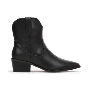 Botki Modne Stylowe Wygodne Komfortowe Na Płaskim Obcasie Eleganckie Skórzane Western Damskie Kowbojki Na Obcasie Czarne Emi 36
