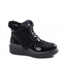 Rieker Botki Damskie Skórzane Na Platformie Ocieplane Czarne-39