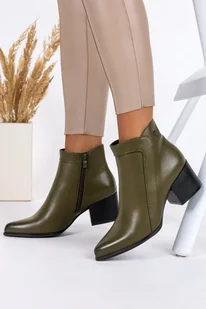 Botki Sergio Leone damskie na szerokim słupku oliwkowe BT633