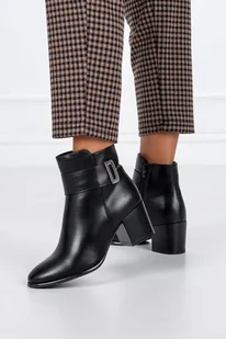 Czarne botki damskie Sergio Leone na szerokim klocku ozdobny suwak YG676