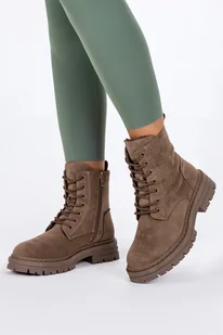 Botki Sergio Leone damskie workery na platformie sznurowane brązowe TR915