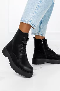 Botki Sergio Leone workery na platformie damskie sznurowane czarne TR759