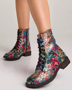Botki skórzane - kwiaty (6675)