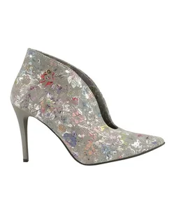 Botki skórzane wsuwane na szpilce w kwiaty (4930)
