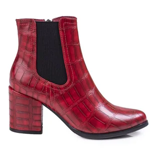 Botki sztyblety na słupku Shelovet czerwone ze wzorem. Sprawdź na butymodne.pl! SHELOVET Botki damskie w świetnej cenie. Promocje oraz darmowa dostawa.