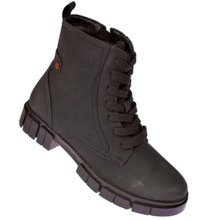 Botki wysokie damskie Skotnicki B-3-1347 – czarne matowe glany i trapery ocieplane Stylowe i trwałe botki na co dzień Stylowe botki damskie Skotnicki B-3-1347 wykonane z największą starannością to połączenie trwałości, wygody i nowoczesnego wyglądu. Modne timberki w czarnym, matowym kolorze sprawdzą się w codziennych stylizacjach i dodadzą charakteru każdemu outfitowi. Wysoka jakość materiałów Botki zostały wykonane z czarnej eko skóry nubukowej, która jest odporna na zarysowania i łatwa w pielęgnacji. Wnętrze buta jest ocieplane, dzięki czemu Twoje stopy pozostaną ciepłe nawet w chłodne dni. Praktyczne rozwiązania Model posiada sznurowanie na 7 dziurek i praktyczny boczny suwak, co umożliwia szybkie zakładanie i zdejmowanie butów oraz idealne dopasowanie do każdej tęgości stopy.