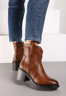 Brązowe Botki na Słupku Ozdobione Drobnymi Nitami Stelira