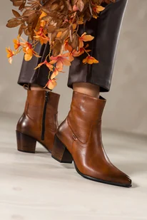 Brązowe botki skórzane damskie kowbojki na szerokim ściętym klocku PRODUKT POLSKI Casu 39434