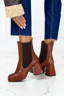 Brązowe botki skórzane na klocku z gumkami po bokach PRODUKT POLSKI Casu 09162-39
