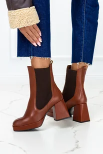 Brązowe botki skórzane na klocku z gumkami po bokach PRODUKT POLSKI Casu 09162
