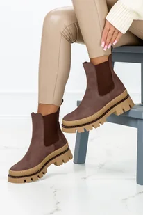 Brązowe botki skórzane na platformie z gumkami po bokach PRODUKT POLSKI Casu 2473