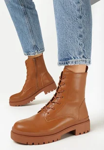 Brązowe Płaskie Botki z Kontrastowymi Elementami i Sznurowaniem Lorian