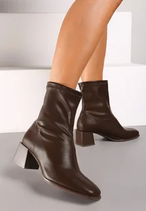 Brązowe Botki Wsuwane na Słupku w Klasycznym Stylu Sileurie