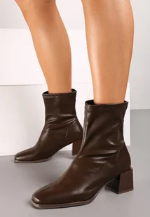 Brązowe Casualowe Wsuwane Botki na Obcasie Taritta