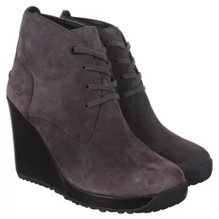 Oryginalne zamszowe damskie botki na koturnie Lacoste Jarriselle Srw Dk Gry Suede przeznaczone do użytku codziennego. Mają skórzaną (zamszową) cholewkę i podeszwę zewnętrzną z wzorem w logotypy. Świetnie sprawdzą się w ciepłe dni na spacerach oraz wypadach na miasto z przyjaciółmi. Pewne i dokładne dopasowanie buta zapewniają wytrzymałe sznurowadła dopasowane kolorystycznie do całości. Oprócz tego buty posiadają również charakterystyczne dla marki Lacoste logotypy.