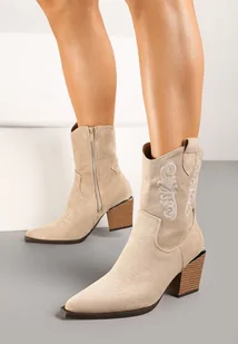 Ciemnobeżowe Botki Kowbojki Vices na Stożkowym Obcasie z Haftem Talfedi