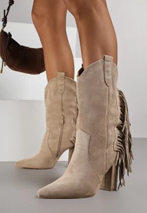 Ciemnobeżowe Botki w Stylu Kowbojek na Obcasie z Frędzlami Reinasea