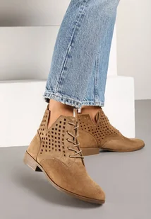 Ciemnobeżowe Botki Vices z Ażurową Cholewką i Wycięciem oraz Skórzaną Wkładką Elixa