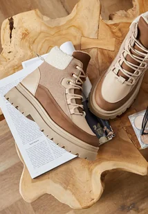 Ciemnobeżowe Traperki Sznurowane Trapery Jette