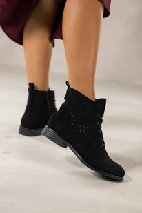 Czarne botki damskie ażurowe płaskie sznurowane Carla S7680-8