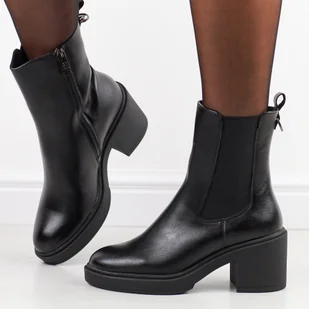na chłodną jesień oraz zimę to doskonały wybór na mroźniejsze dni, łączący styl z funkcjonalnością. Cholewka wykonana z wysokiej jakości materiału skóropodobnego nie tylko prezentuje się elegancko, ale także jest łatwa w pielęgnacji i odporna na niekorzystne warunki atmosferyczne. Dzięki wyższej cholewce, botki zapewniają dodatkową ochronę przed chłodem i wilgocią, co czyni je idealnymi na zimową aurę. Buty posiadają klasyczny, okrągły nosek, co zapewnia komfort i przestrzeń dla palców, a zapięcie na suwak umożliwia szybkie i wygodne zakładanie oraz zdejmowanie