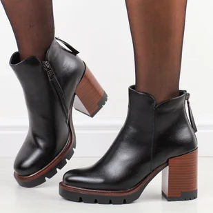 to elegancka propozycja na chłodną jesień oraz zimę. Wykonane z wysokiej jakości materiału skóropodobnego, te stylowe botki są zapinane na suwak i mają kwadratowy nosek, który dodaje im nowoczesnego charakteru. Wkładka i cholewka są ocieplone polarem, co zapewnia ciepło i komfort nawet w najzimniejsze dni. Botki osadzone są na masywnym słupku w kolorze brązowym oraz platformie, co gwarantuje stabilność oraz wygodę przez cały dzień. Dzięki swojej uniwersalności, te botki doskonale pasują zarówno do spodni, jak i sukienek, świetnie uzupełniając różnorodne st
