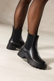 Czarne botki damskie Sergio Leone na bieżnikowanej platformie gumy w cholewce YG228