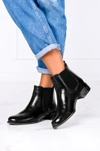 Czarne botki damskie Sergio Leone na niskim ozdobnym obcasie z gumkami po bokach BT532-CA