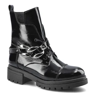 Czarne Botki Karino Damskie Skórzane Obuwie