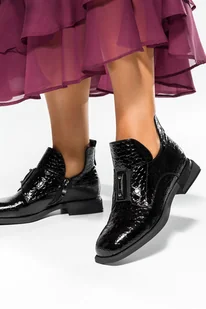 Czarne botki lakierowane damskie na ozdobnym klocku guma z ozdoba krokodyli wzór Casu BC24X5-B