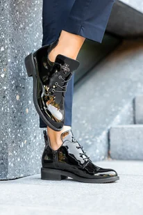 Czarne botki lakierowane damskie z muchą wycięcia po bokach Casu D212X15-BP