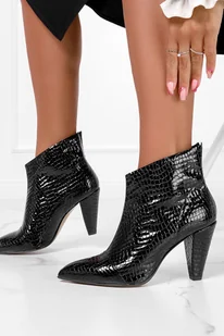 Czarne botki lakierowanena na obcasie krokodyli wzór POLSKA SKÓRA Casu 9025