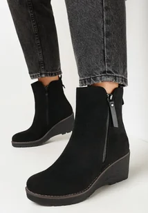 Czarne Botki na Koturnie z Imitacji Zamszu Paurik