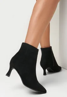 Czarne Botki na Niskim Obcasie ze Szpiczastym Noskiem Zatira