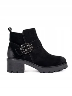 Buty damskie modne i wygodne – idealne na co dzień i specjalne okazje! NOWE - Czarne botki na obcasie ze skóry naturalnej nubuk z klamrą Sergio Leone 37 Symb...