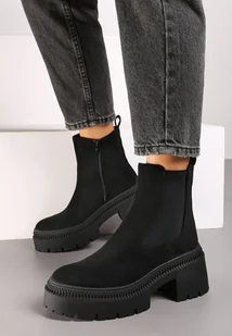 Czarne Botki na Słupku i Platformie Sztyblety Grunge z Elastyczną Cholewką Lericea