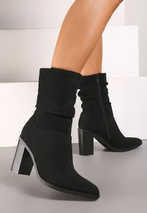 Czarne Botki na Słupku z Marszczoną Cholewką z Imitacji Zamszu Lialanae