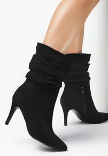 Czarne Botki na Szpilce z Marszczeniem Mirah