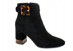 Czarne botki NESSI 20782 skóra zamszowa słupek modne eleganckie r.36