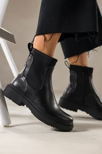 Czarne botki skórzane damskie Sergio Leone na żłobionej platformie elastyczna cholewka YG74572-H