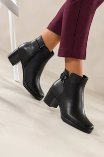 Czarne botki damskie Sergio Leone na szerokim słupku elastyczna cholewka KZ222-CA