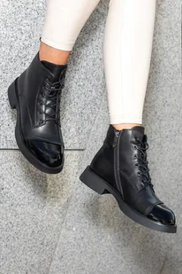 Czarne botki skórzane damskie sznurowane Casu BC24X13-B