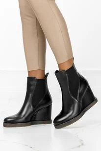 Czarne botki skórzane na koturnie z gumkami po bokach PRODUKT POLSKI Casu 2458-40