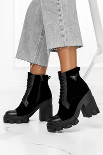 Czarne botki skórzane na platformie sznurowane PRODUKT POLSKI Casu 2526-500-100