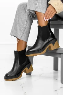 Czarne botki skórzane na platformie z gumkami po bokach PRODUKT POLSKI Casu 8195