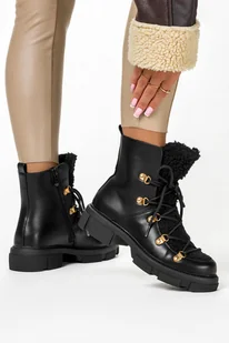 Czarne botki śniegowce damskie z kożuszkiem sznurowane Casu 22-15-40